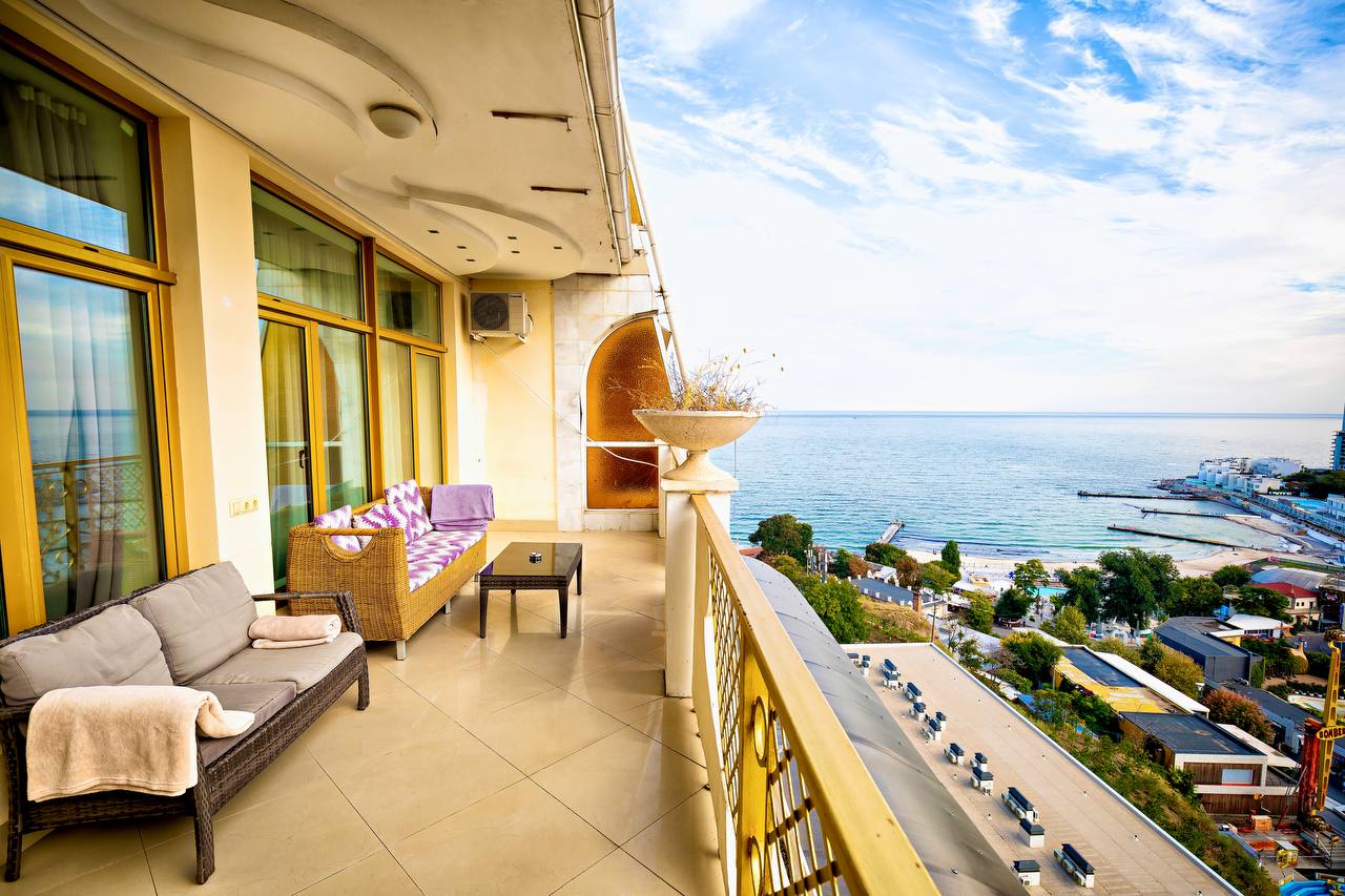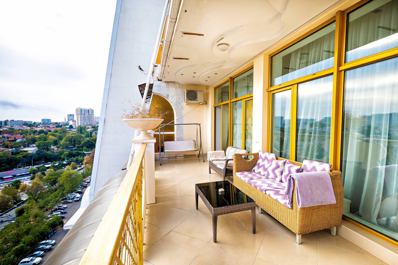 Главная особенность — это потрясающий вид на море со всех комнат и огромная терраса с мебелью для отдыха.