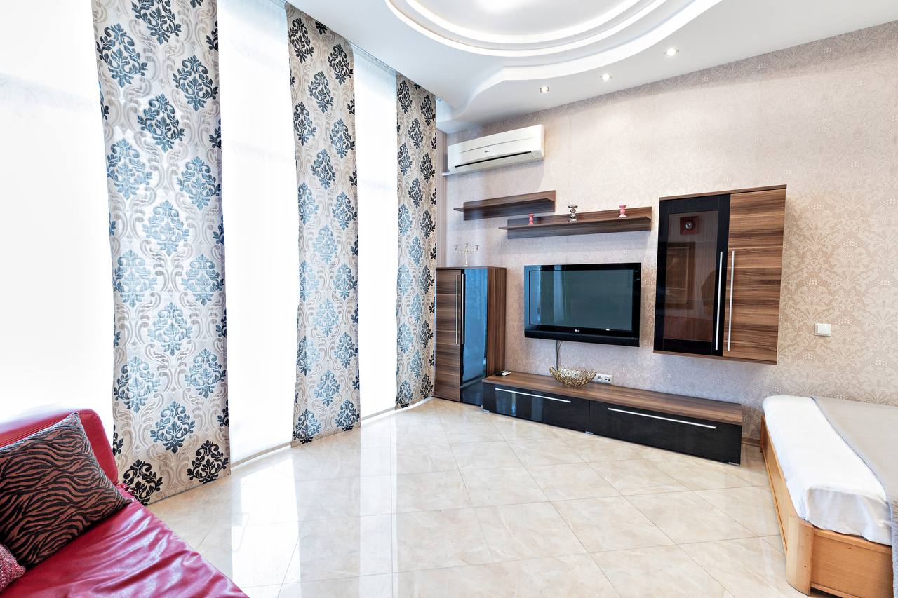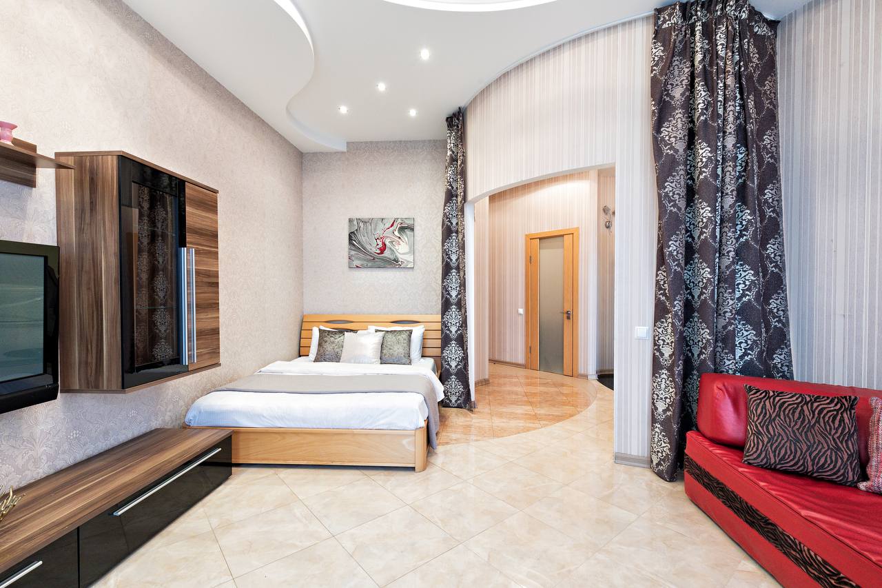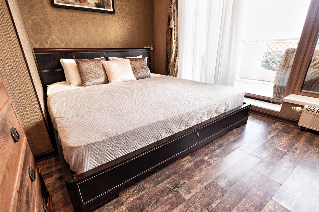 Комфортабельные апартаменты с двумя спальнями, стильный дизайн, отличный ремонт из современных материалов, евроуровень, интересная планировка. Апартаменты очень просторные, где много воздуха и света. Необычное оформление отдельных двух спален с двуспальными кроватями, единое студийное пространство гостиной, где есть удобный диван, раскладывающийся в двуспальное место.