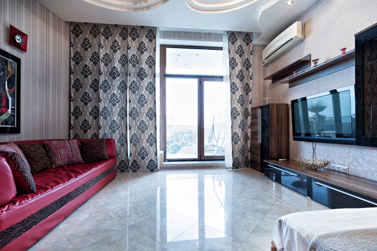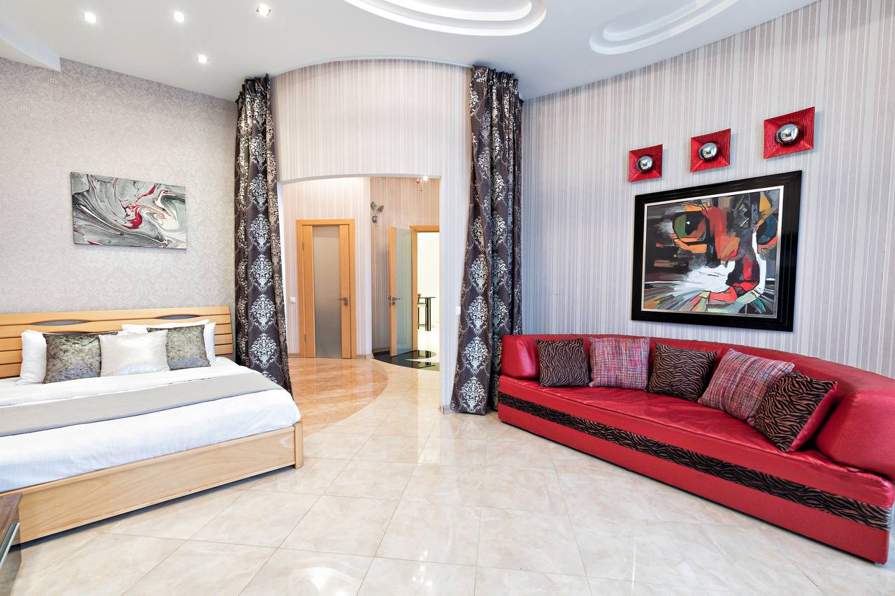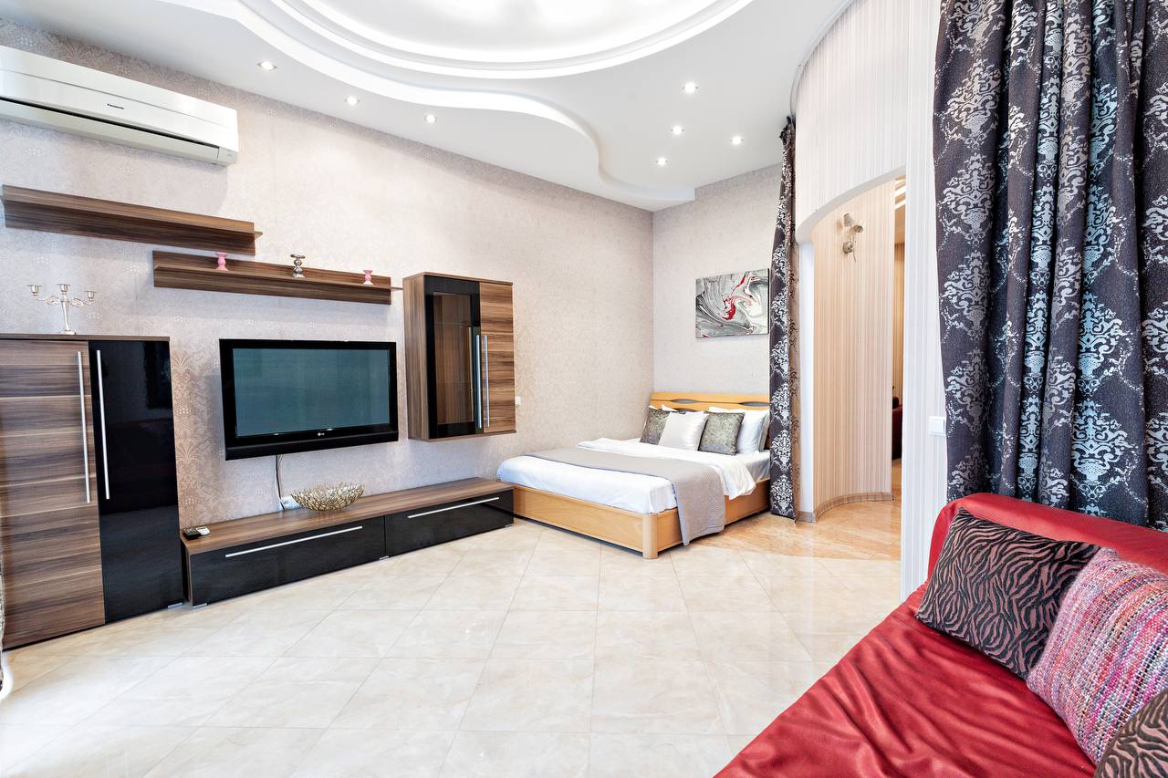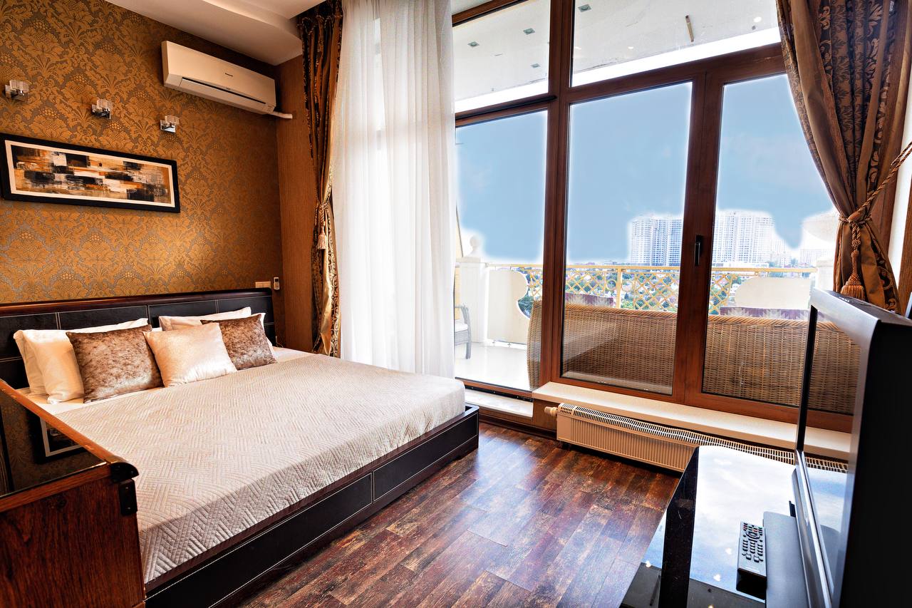 Комфортабельные апартаменты с двумя спальнями, стильный дизайн, отличный ремонт из современных материалов, евроуровень, интересная планировка. Апартаменты очень просторные, где много воздуха и света. Необычное оформление отдельных двух спален с двуспальными кроватями, единое студийное пространство гостиной, где есть удобный диван, раскладывающийся в двуспальное место.