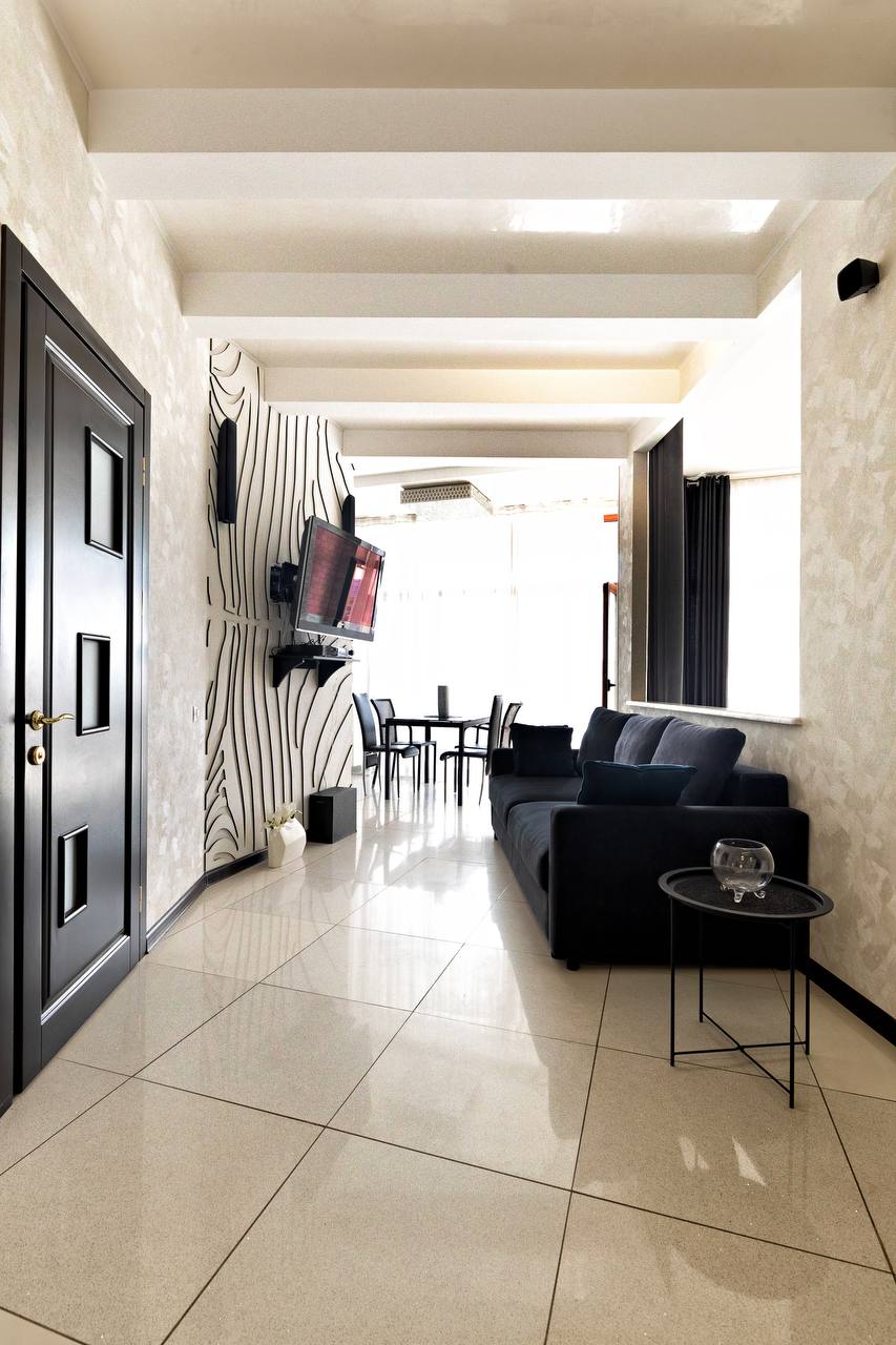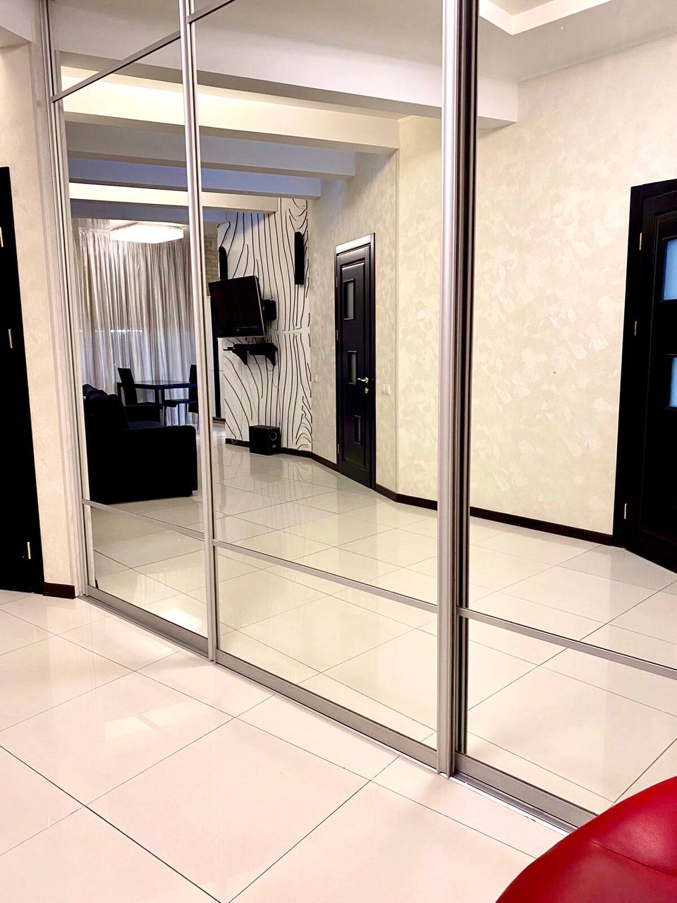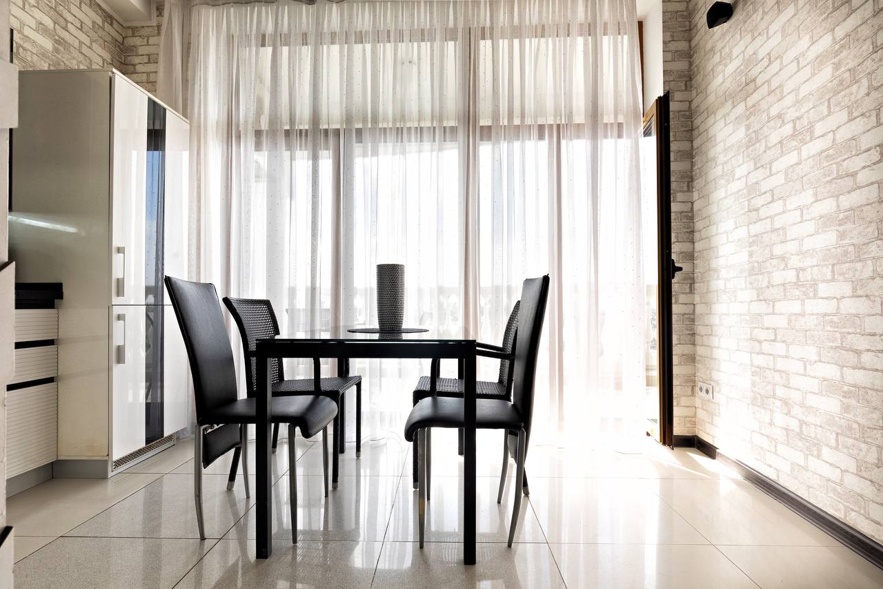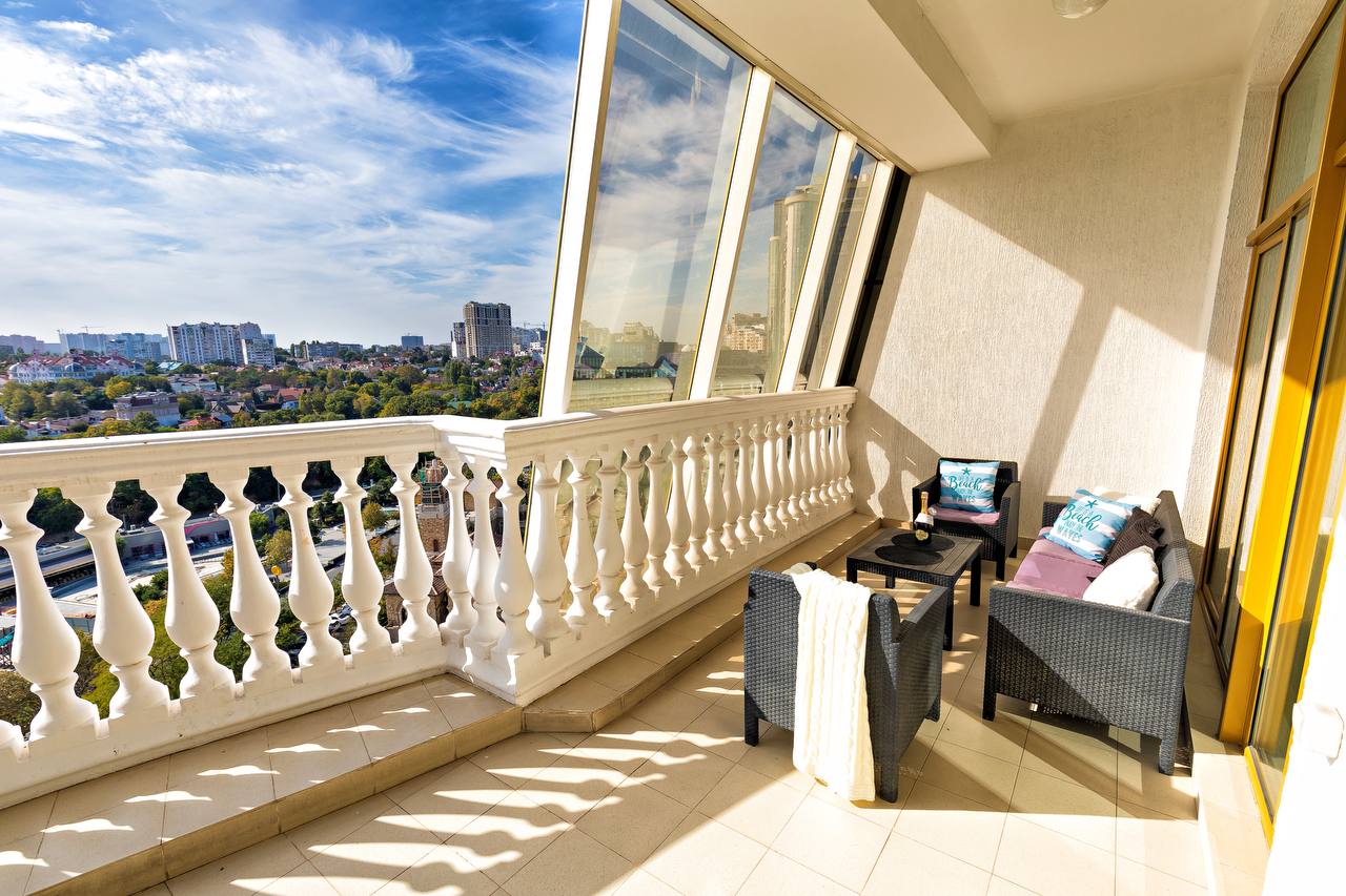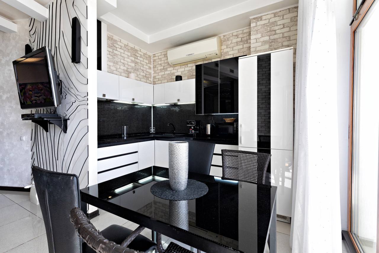 Роскошные ультрасовременные апартаменты, очень светлые и уютные, с хорошим видом на морское побережье. Эксклюзивный дизайнерский ремонт, неповторимый интерьер, высокое качество исполнения. Студийная планировка гостиной и кухни, отдельно спальня с большой двуспальной кроватью, в гостиной — диван, раскладывающийся в двуспальное место, кухня со стильными белыми фасадами, два санузла ,один из которых с ванной-джакузи и другой с душевой кабиной. Дорогой интерьер, аксессуары, мебель, ЖК телевизор, полное оснащение первоклассной техникой от известных фирм-производителей. Из гостиной — выход на большую террасу с мягкой мебелью для отдыха .