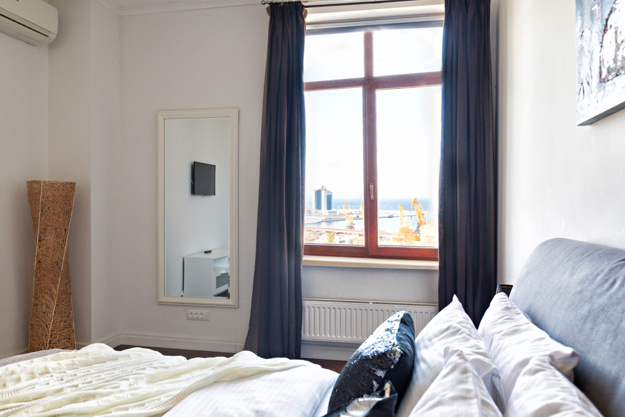 Главная изюминка апартаментов — великолепный панорамный вид на Одесский залив и город.