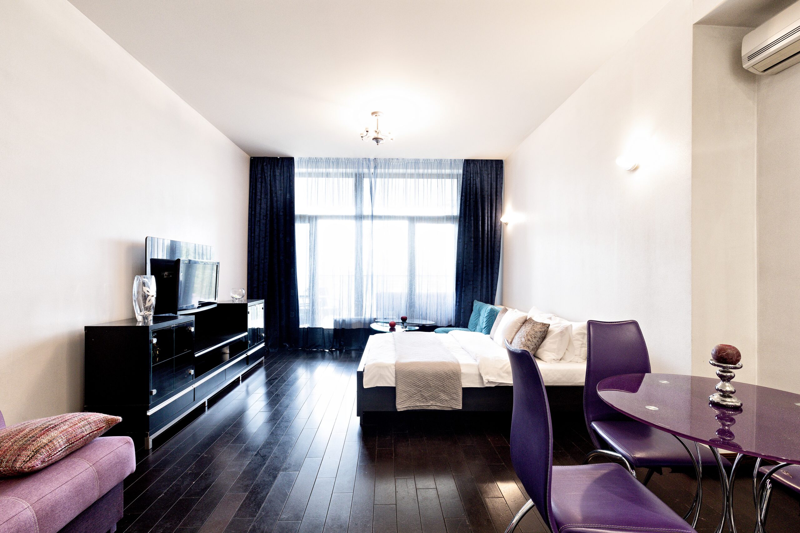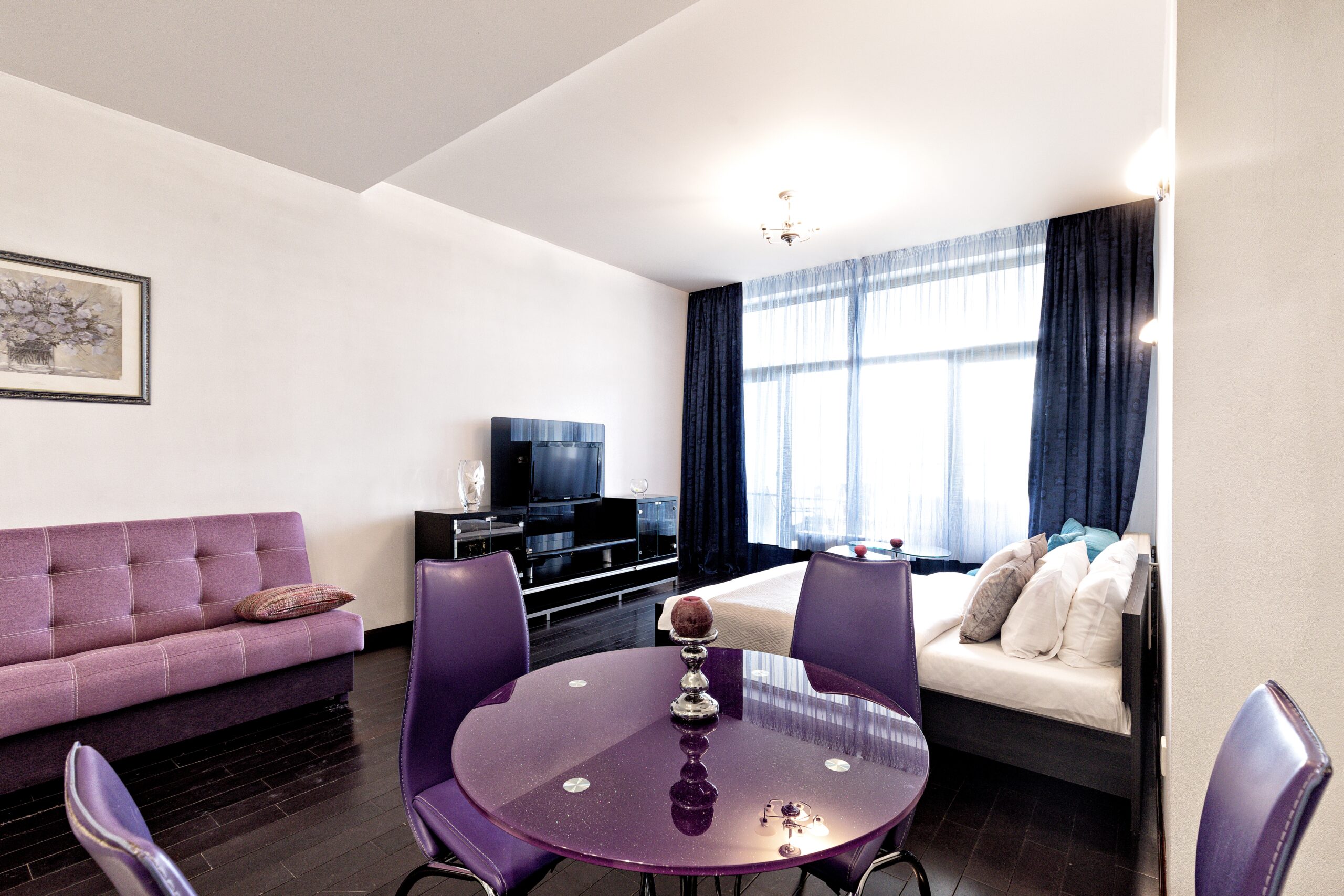 Стильные современные апартаменты студийной планировки с запоминающимся дизайном, с использованием качественных материалов. Пространство апартаментов разделено на спальную и гостевую зоны. В спальной зоне двуспальная кровать, в гостевой — большая зона-релакс, в которой размещены диван, журнальный столик, ЖК ТВ 40’’. И конечно же кухня с обеденной зоной со столом и стульями. В ванной комнате душевая кабина. Просторная терраса с удивительными пейзажами Одессы.