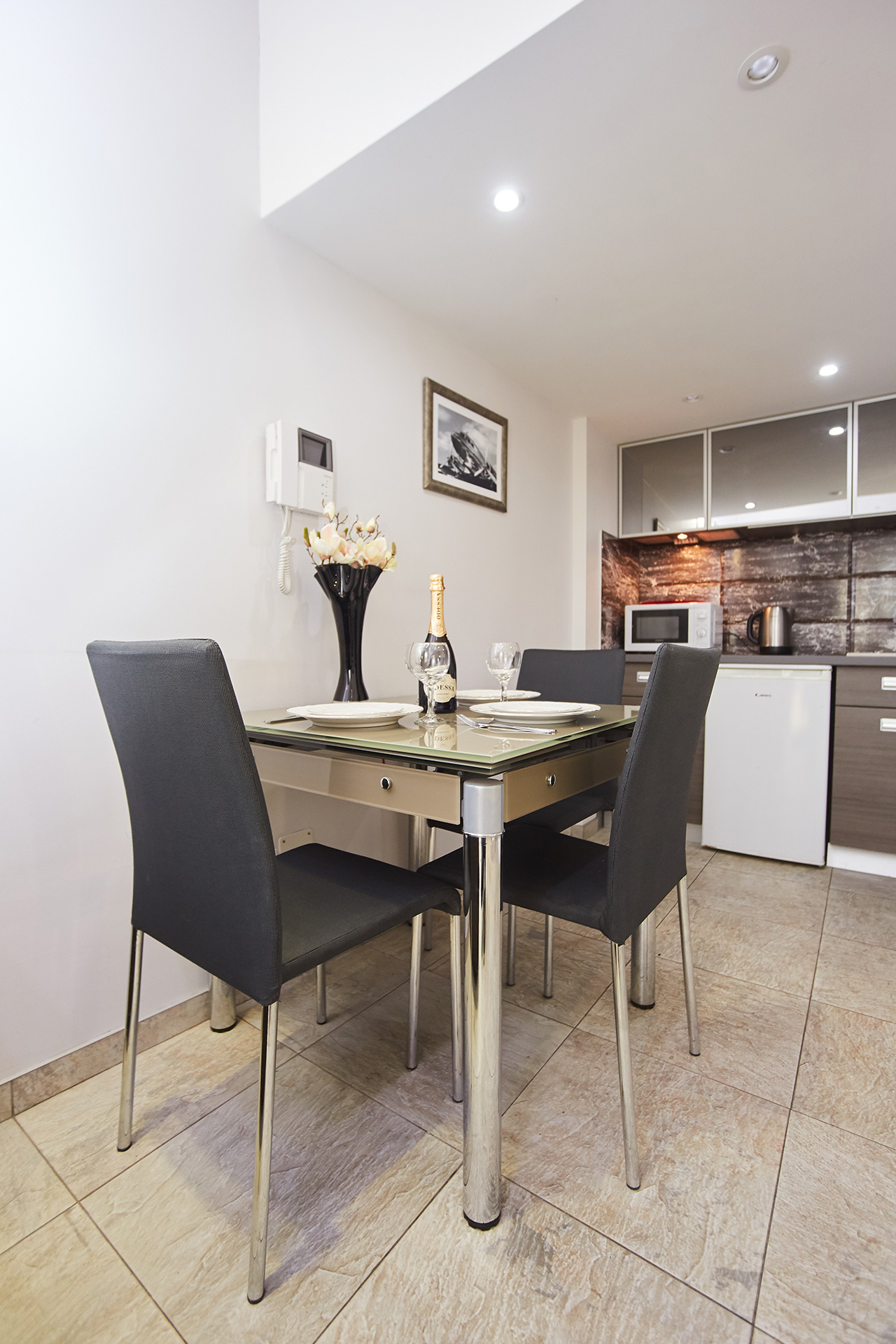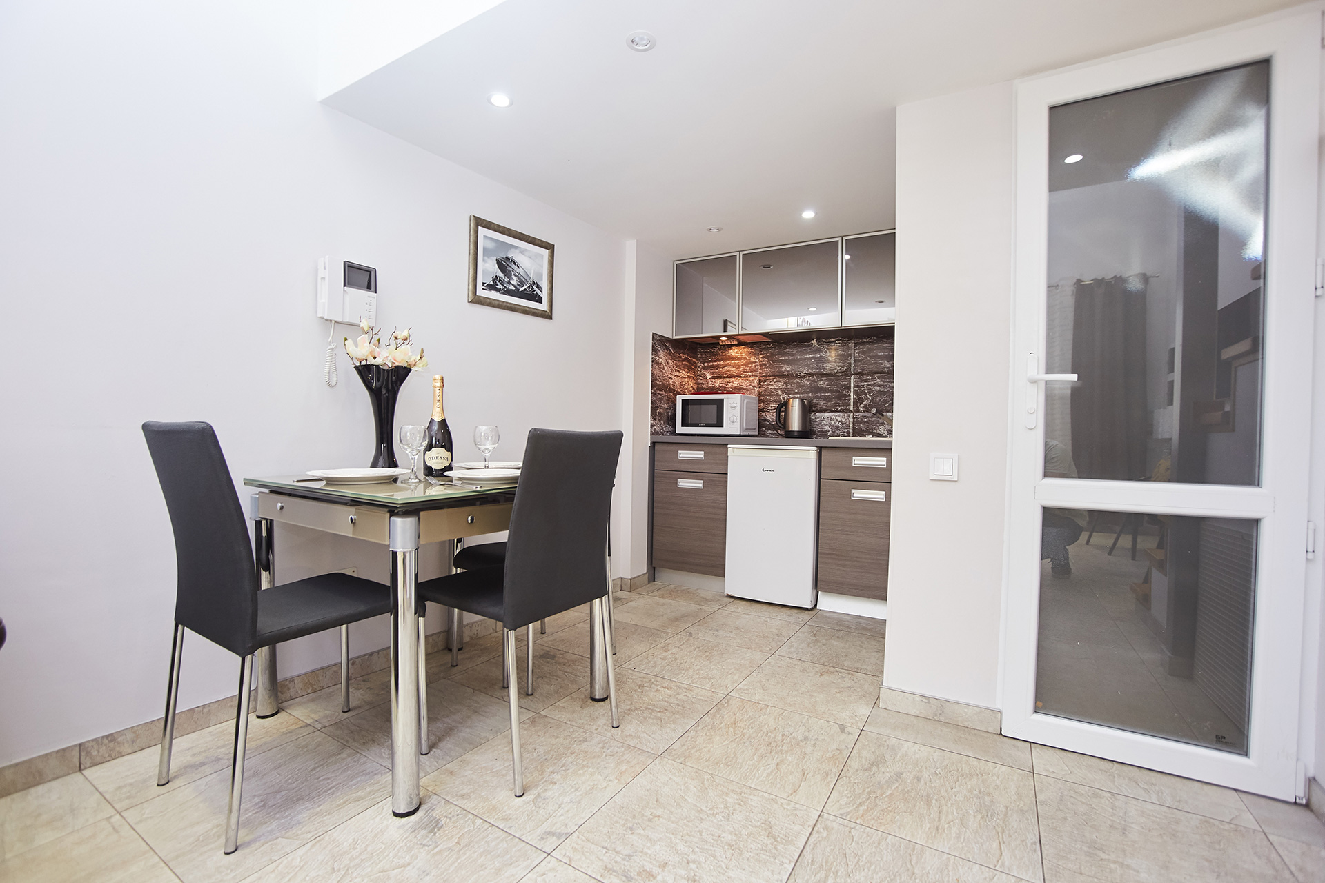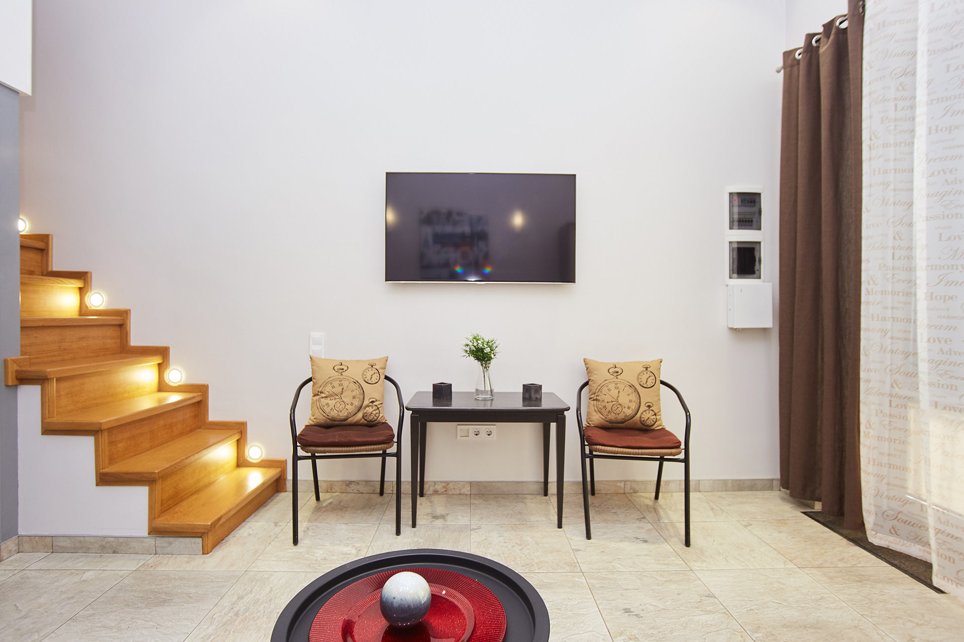 The Stylish modern duplex studio apartment has its own entrance and a small terrace.