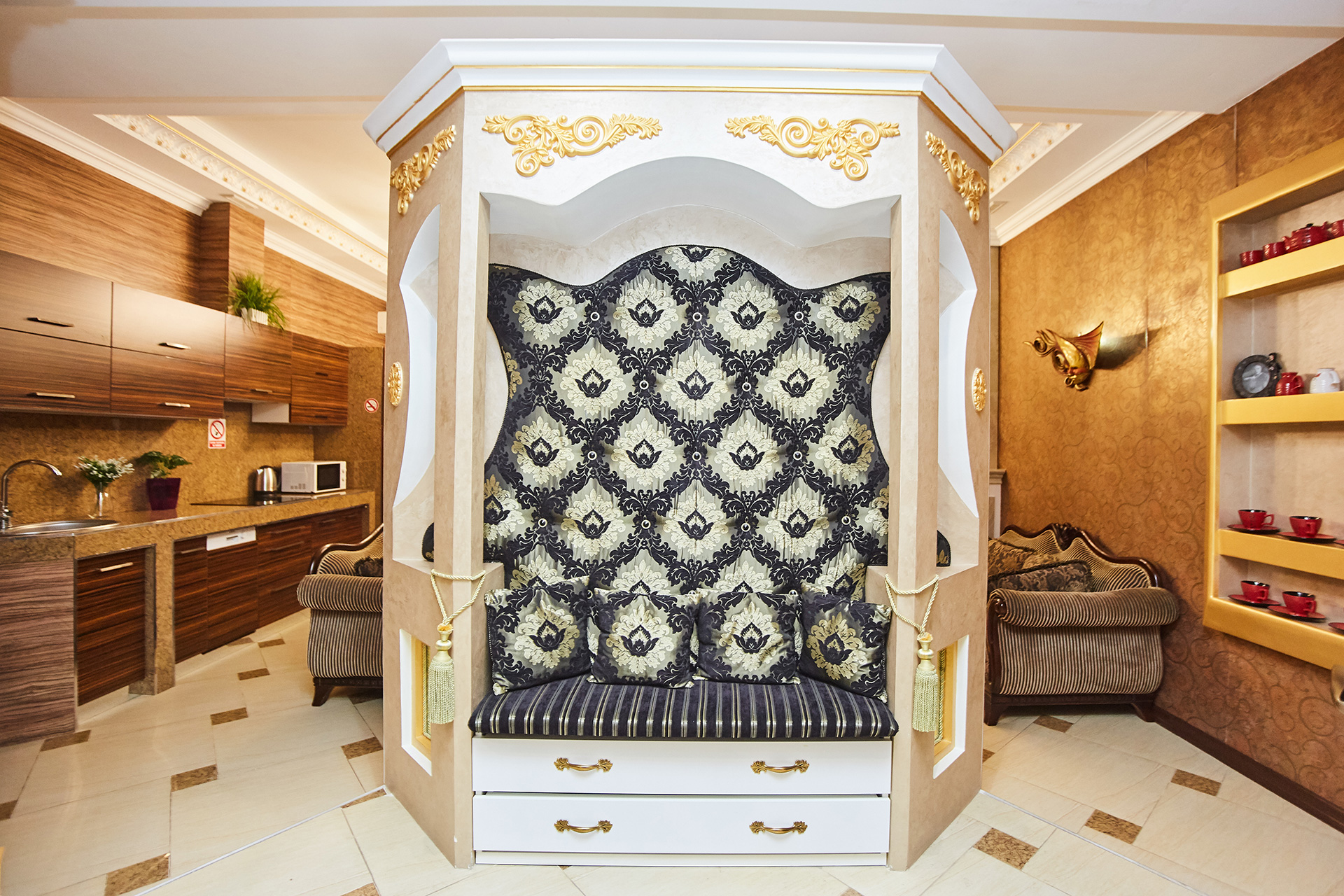 This apartment gives you an opportunity to feel as if you are living in a real royal palace.