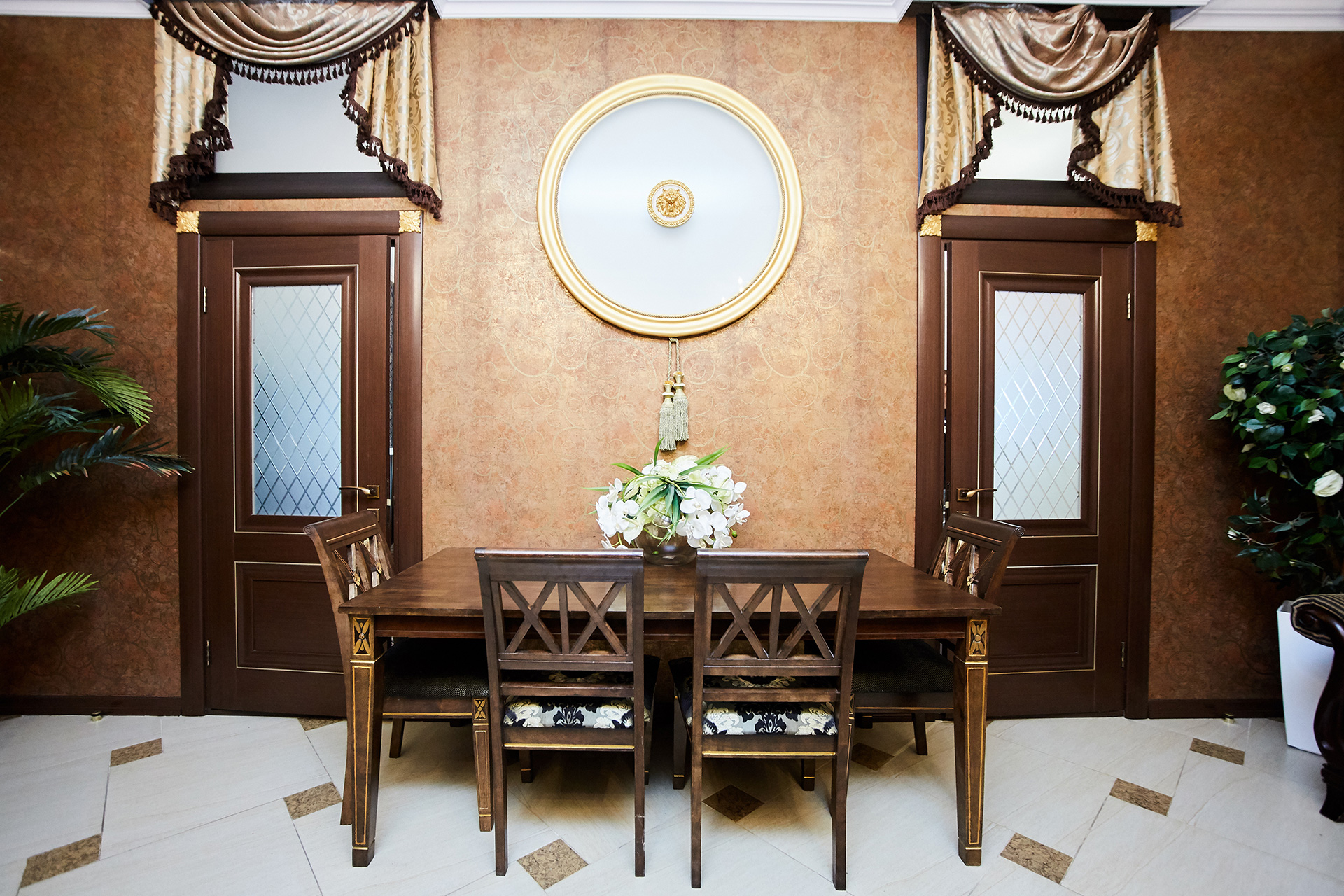 Original non-standard shapes, expensive accessories, furniture, a special atmosphere of elegance create a unique, bright and recognizable apartment’s image.
