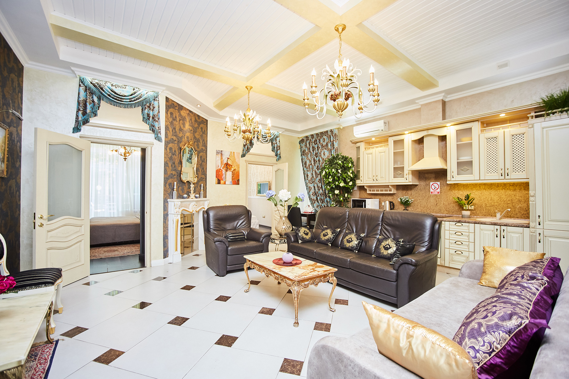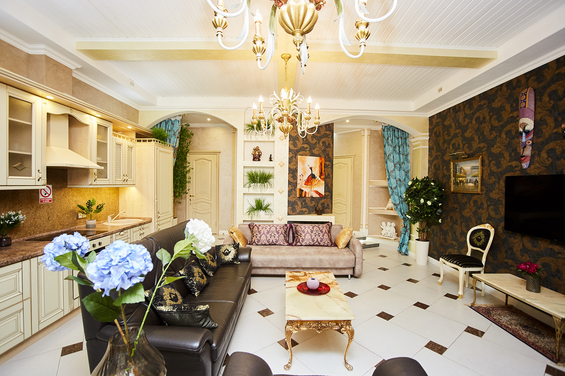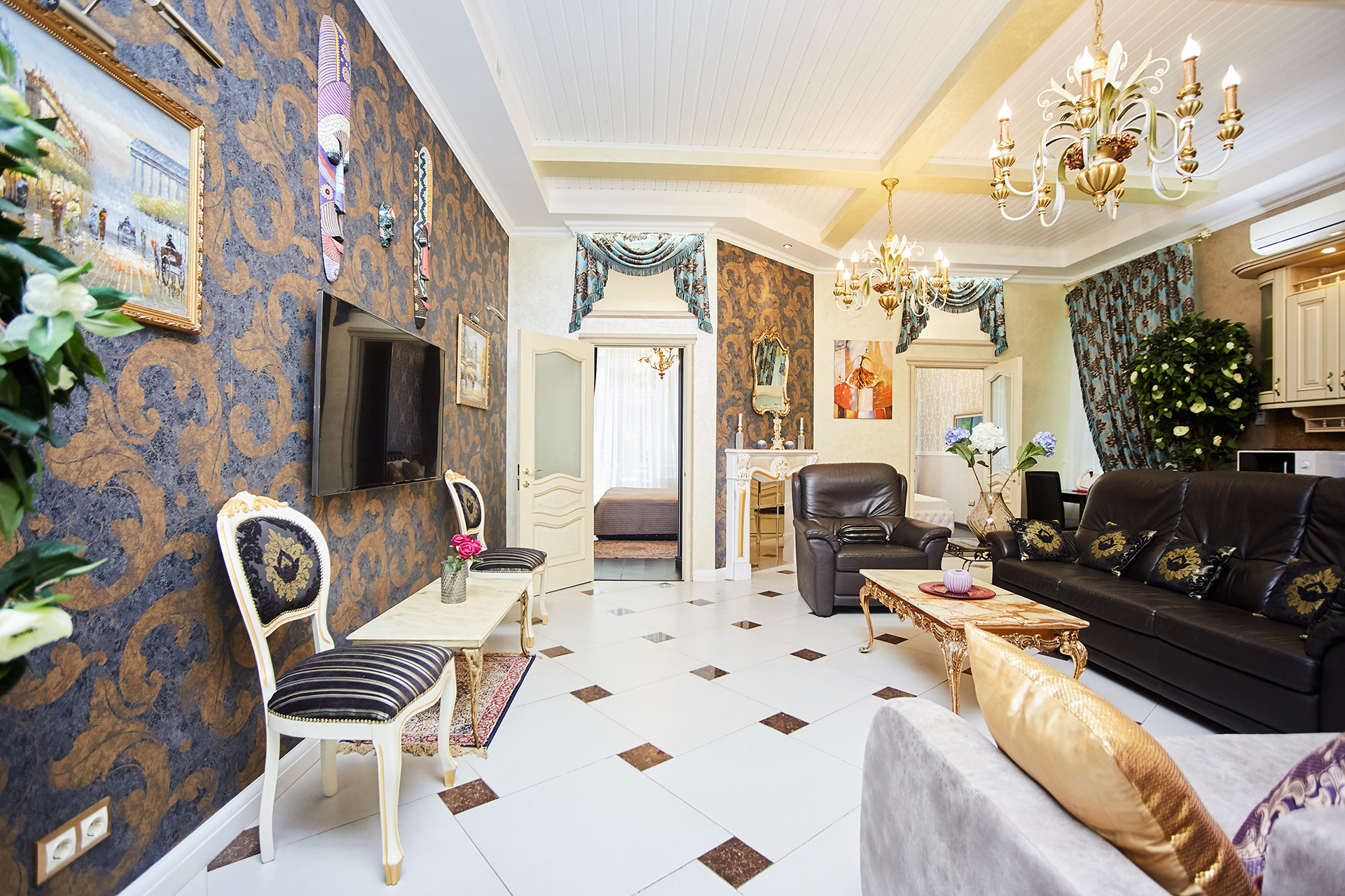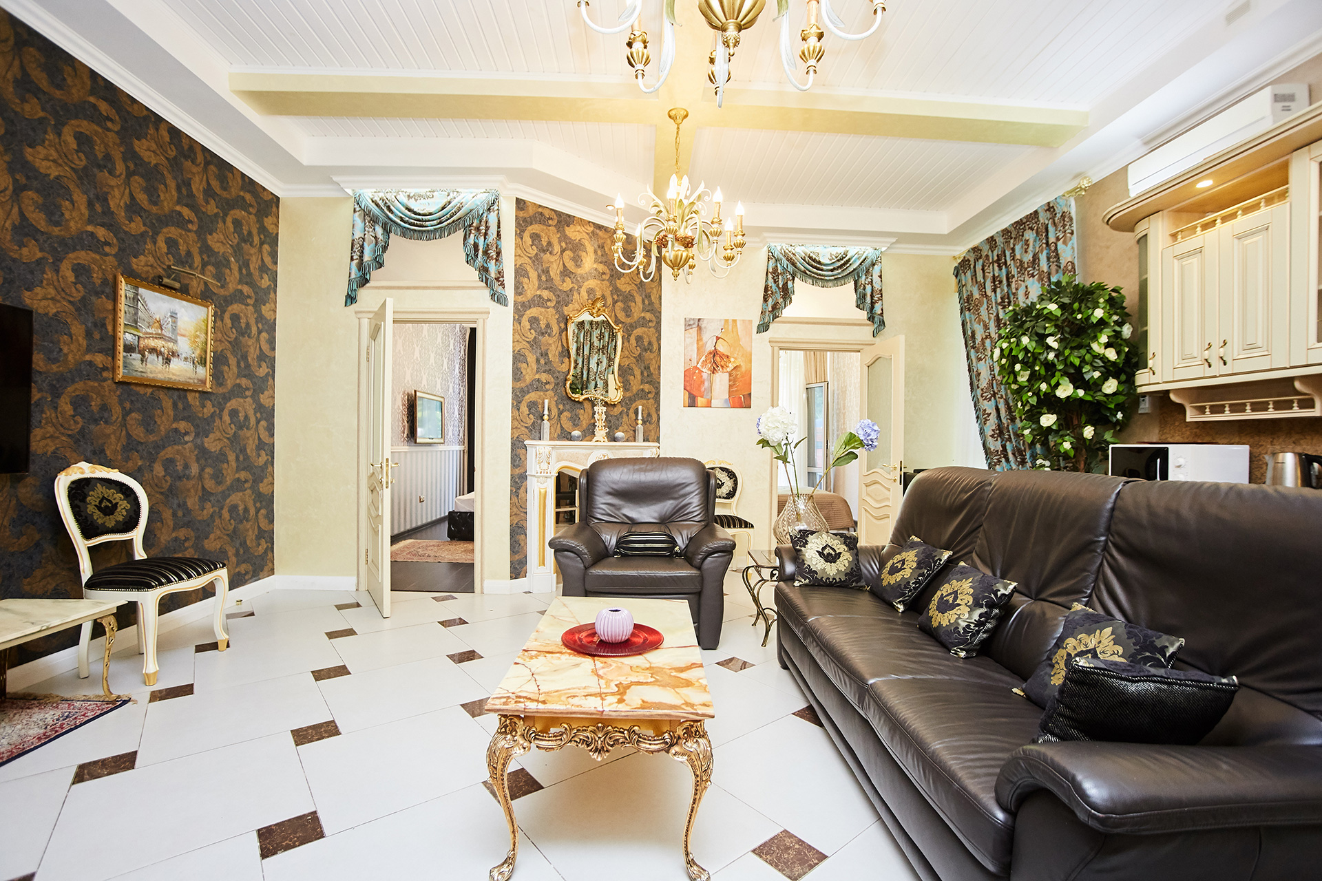 This apartment gives you an opportunity to feel as if you are living in a real royal palace.