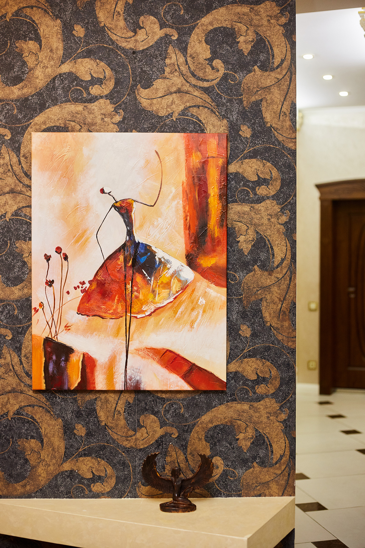 Original non-standard shapes, expensive accessories, furniture, a special atmosphere of elegance create a unique, bright and recognizable apartment’s image.