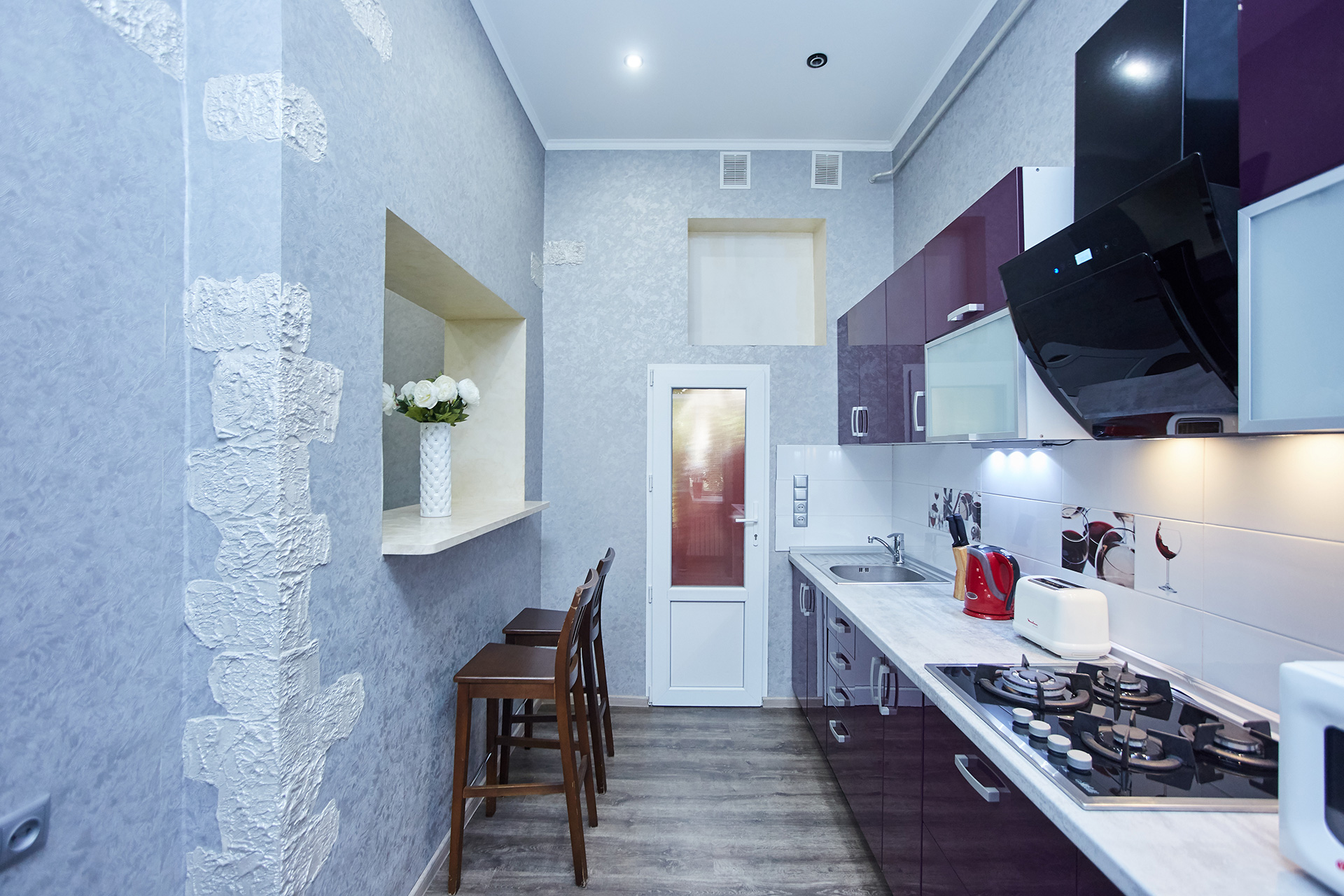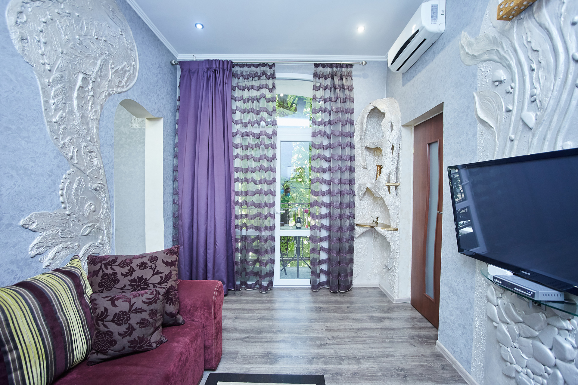 On the corner of Lanzheronovskaya str and Gavannaya str. The second floor of the old house, with a balcony. It’s situated in the very heart of Odessa. Lanzheronovskaya street is the street where the world-known gem of European architecture is situated. This location offers our guests the opportunity to eat out in our best restaurants Kumanets and Olio Pizza which are opposite the house, to enjoy walking in Deribasovskaya street which is round the corner and discover numerous tourist attractions which are within easy walking distance. Well-developed surroundings, shopping centres, cafes, restaurants and infrastructure provide you with all the necessities for comfortable staying. For example, the shopping center Athena offers an underground parking.