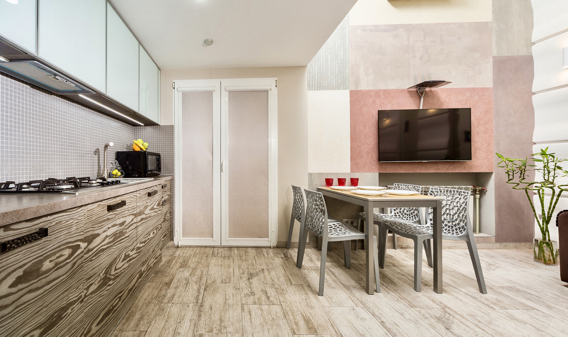 Original non-standard shapes, expensive accessories and upscale furniture create a unique and special charm of this apartment with elegant style, comfort and personality.