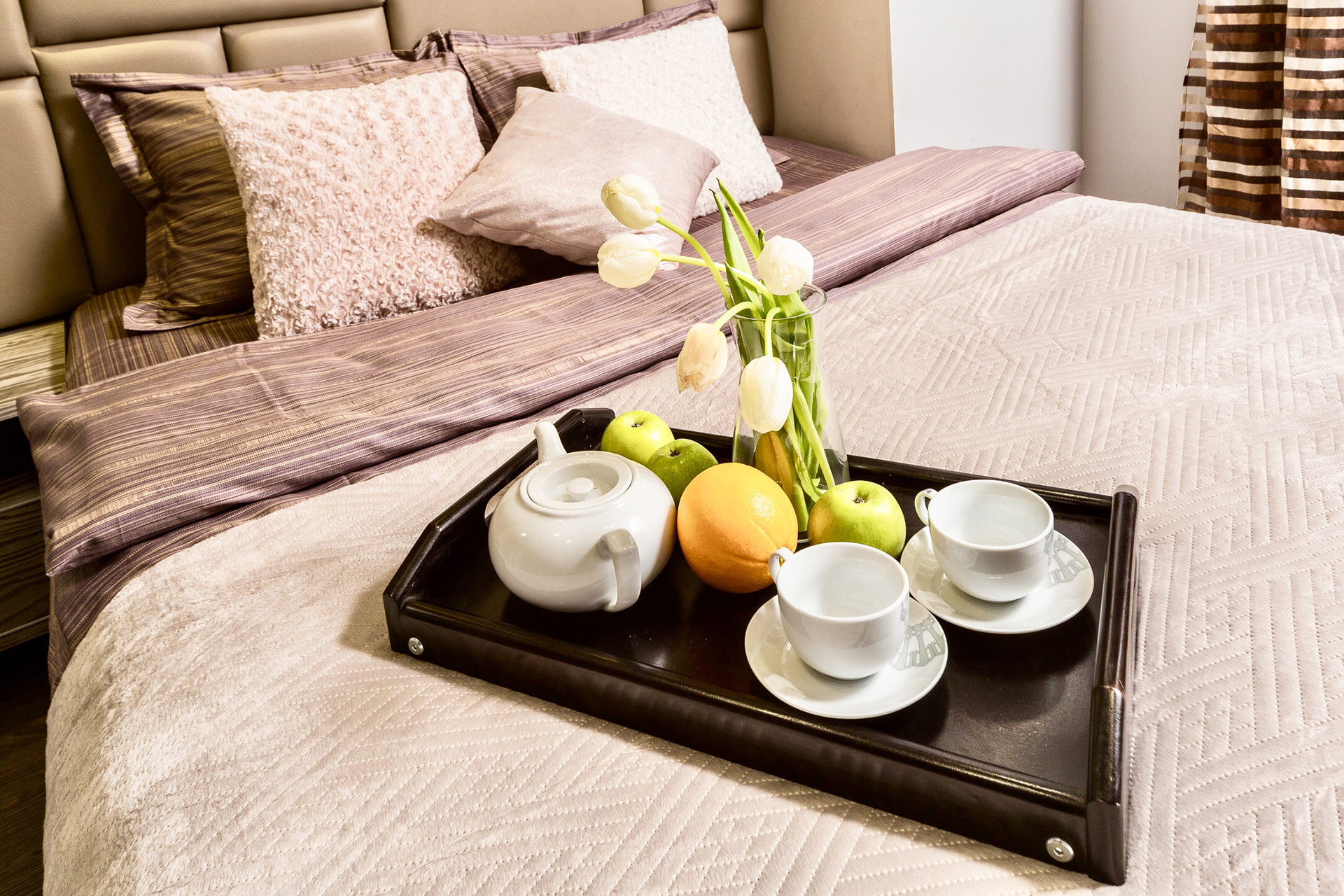 - bedding, towels, slippers;