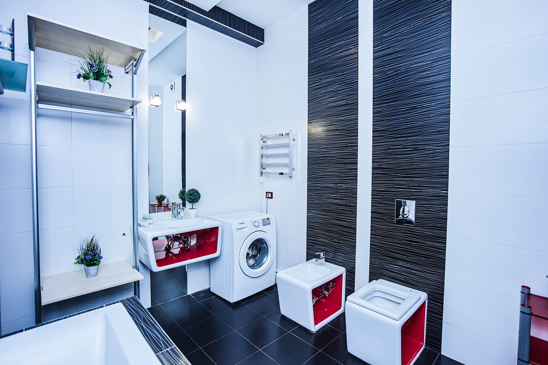 The apartment has incredible floor-to-ceiling windows overlooking the seafront. The comfortable and original layout is for 2 — 8 guests here. The apartment has a spacious living room with a dining area and the area to relax. There’s a 50″ flat-screen TV and a fully equipped kitchen. The apartment also has three separate bedrooms with king-size beds, glass partitions walls, a designer table, comfortable sofas transformed into double beds. The bathroom is equipped with a washbasin, a spacious bathroom, a bidet. There’s a large terrace with soft outdoor furniture.